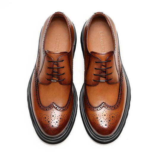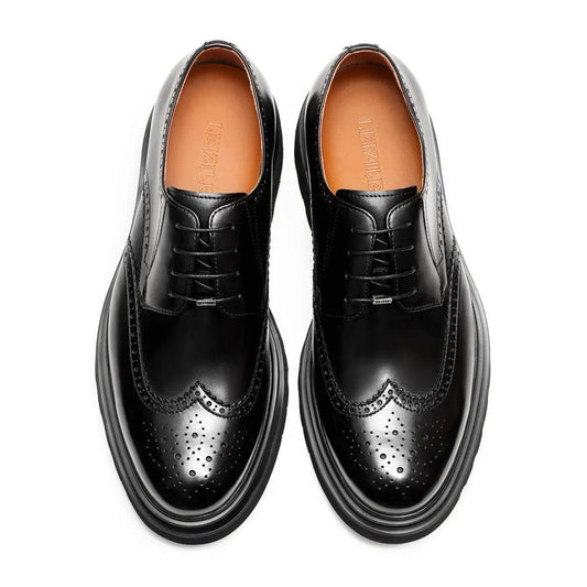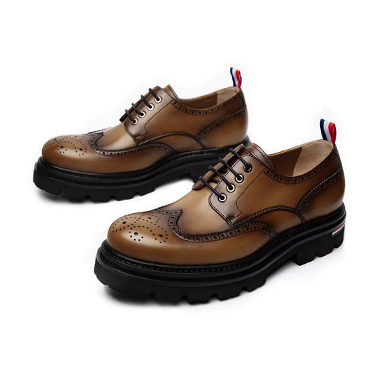 Premium Handmade Original Men's Thick Sole Brogue Calf Leather Derby Shoes 202502B
