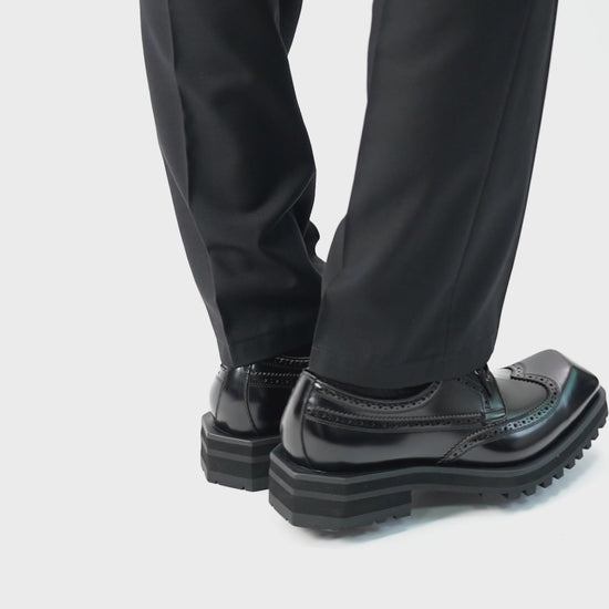 Men's Premium Black Wingtip Derby Shoes with Rugged Sole